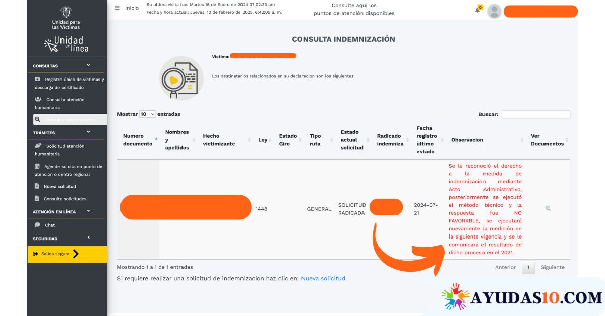 consultar indemnización de desplazados